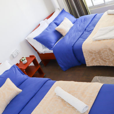 This is our standard room type which comes with a shared sitting area and tv lounge. Rooms have 2 double beds with attached bathrooms
