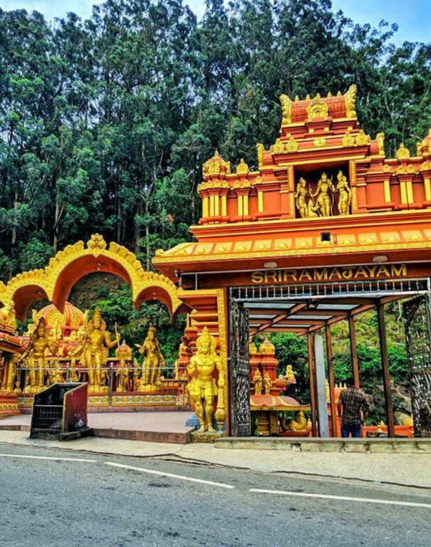 The Seetha Amman Temple is a small temple located in the village of Seetha Eliya in Sri Lanka. It is about a kilometre away from the Hakgala Botanical Gardens, and about 5 to 6 kilometres away from the central city of Nuwara Eliya. It is a shrine for Sita Devi, the daughter of Mother Earth and wife of Lord Rama, from the Ramayana. The temple is built on the site where Sita Devi was believed to be kept as a prisoner by King Ravana. The temple premises also has Lord Hanuman's footprints and the river Seetha from where different deities were recovered.
